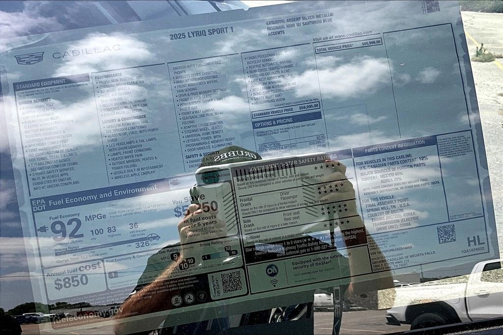 Priced below KBB Fair Purchase Price! Argent Silver Metallic 2025 Cadillac LYRIQ Electric Motor 1-Speed Automatic RWD Sport New Feature 3, New Feature 4, 4-Wheel Disc Brakes, 6-Way Power Front Passenger Seat Adjuster, 7 Speakers, 7-Speaker Audio System Feature, 8-Way Power Driver Seat Adjuster, ABS brakes, Air Conditioning, AM/FM radio: SiriusXM with 360L, Auto High-beam Headlights, Automatic temperature control, Brake assist, Delay-off headlights, Dual front impact airbags, Dual front side impact airbags, Electronic Stability Control, Emergency communication system: OnStar and Cadillac connected services capable, Four wheel independent suspension, Front anti-roll bar, Front dual zone A/C, Fully automatic headlights, Knee airbag, Low tire pressure warning, Memory seat, Navigation system: Google Automotive Services Capable, Occupant sensing airbag, Overhead airbag, Panic alarm, Power driver seat, Power Liftgate, Power steering, Power windows, Preferred Equipment Group 1SF, Premium Suspension, Radio data system, Rear anti-roll bar, Rear window defroster, Remote keyless entry, SiriusXM with 360L Trial Subscription, Speed-sensing steering, Steering wheel memory, Steering wheel mounted audio controls, Traction control.