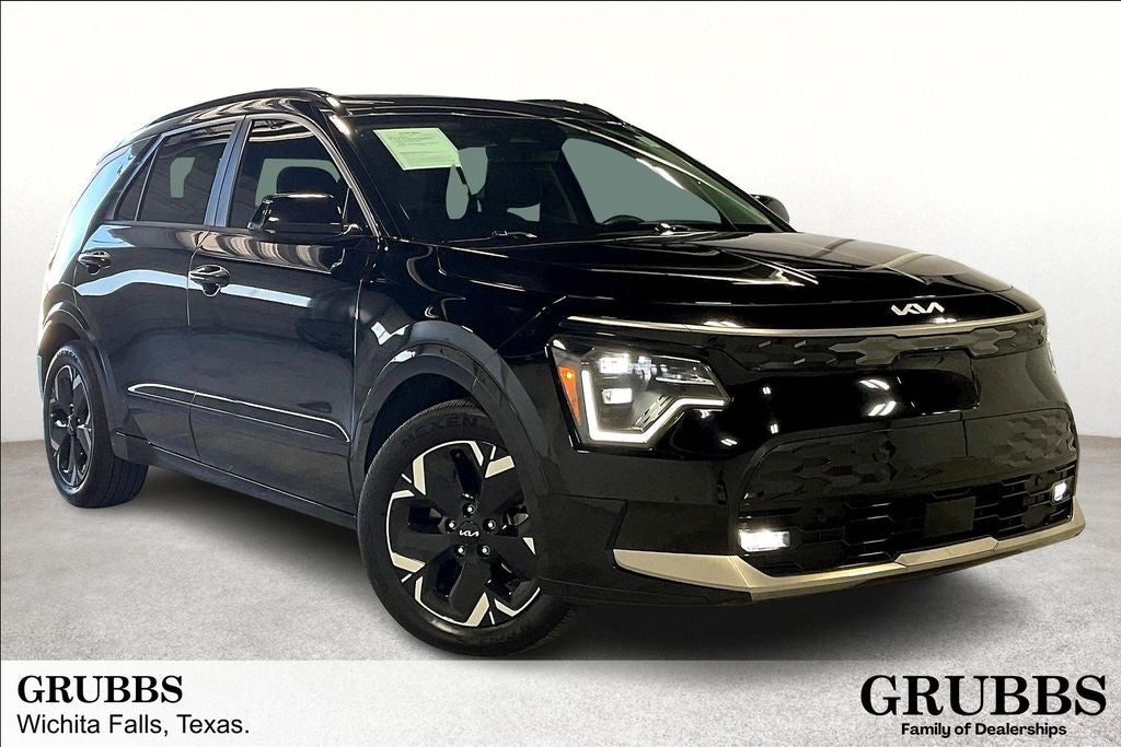 New Price! 2023 Kia Niro EV Wave Wave Aurora Black Pearl 4D Sport Utility FWD Electric Motor 1-Speed Automatic Niro EV Wave, 4D Sport Utility, Electric Motor, 1-Speed Automatic, FWD, Aurora Black Pearl, Charcoal Leather, 10.65 Axle Ratio, 4-Wheel Disc Brakes, 8 Speakers, ABS brakes, Air Conditioning, Alloy wheels, AM/FM radio: SiriusXM, Apple CarPlay & Android Auto, Auto High-beam Headlights, Auto-dimming Rear-View mirror, Automatic temperature control, Brake assist, Bumpers: body-color, Cargo Mat, Carpet Floor Mats, Delay-off headlights, Driver door bin, Driver vanity mirror, Dual front impact airbags, Dual front side impact airbags, Electronic Stability Control, Emergency communication system: Kia Connect (includes 1 year free trial), Exterior Parking Camera Rear, Four wheel independent suspension, Front anti-roll bar, Front Bucket Seats, Front Center Armrest, Front dual zone A/C, Front fog lights, Front reading lights, Fully automatic headlights, Garage door transmitter: HomeLink, harman/kardon® Speakers, Heated & Ventilated Front Bucket Seats, Heated door mirrors, Heated front seats, Heated steering wheel, Illuminated entry, Knee airbag, Low tire pressure warning, Memory seat, Navigation System, Occupant sensing airbag, Outside temperature display, Overhead airbag, Overhead console, Panic alarm, Passenger door bin, Passenger vanity mirror, Perforated Vegan Leather-Trimmed Seats, Power door mirrors, Power driver seat, Power Liftgate, Power moonroof, Power passenger seat, Power steering, Power windows, Radio: harman/kardon Premium Audio System, Rain sensing wipers, Rear anti-roll bar, Rear seat center armrest, Rear window defroster, Rear window wiper, Remote keyless entry, Security system, Speed control, Speed-sensing steering, Split folding rear seat, Spoiler, Steering wheel mounted audio controls, Telescoping steering wheel, Tilt steering wheel, Traction control, Trip computer, Turn signal indicator mirrors, Two-Level Cargo Mat, Two-Level Luggage Board, Variably intermittent wipers, Ventilated front seats, Wheels: 7.0J x 17 Aero Alloy.
