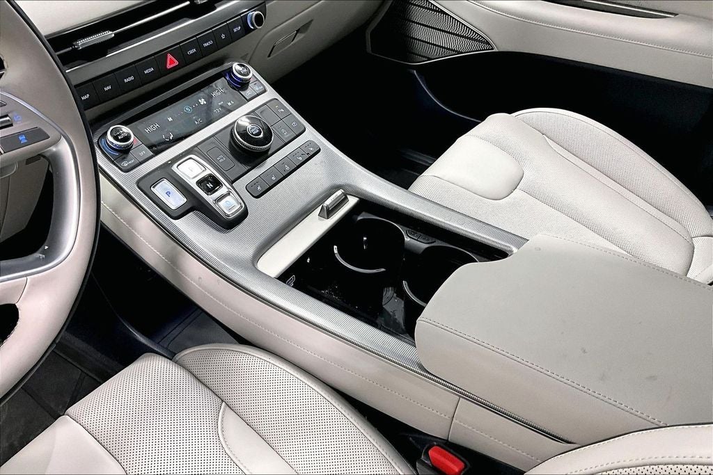 - Radio: AM/FM/MP3 Premium Audio System -inc: 630-Watts, Harman Kardon audio system w/12-speakers, Quantum Logic Surround, Clari-Fi music restoration technology, 12.3" color touchscreen display, onboard navigation w/traffic flow including incident data via HD Radio (HERE), Over-the-Air (OTA) map updates, SiriusXM, Android Auto and Apple CarPlay, rear seat quiet mode, passenger talk (in-car intercom), Wifi hotspot, Bluetooth® hands-free connectivity w/multiple device connection and wireless audio streaming, USB, dynamic voice recognition and Bluelink Connected Car System