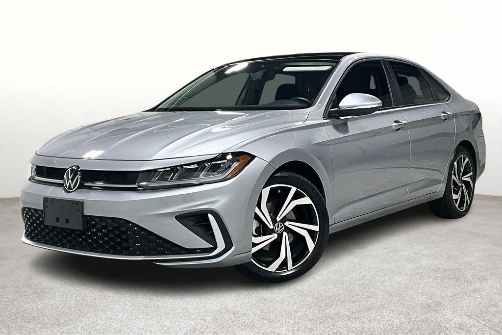 2025 Volkswagen Jetta 1.5T SEL 1.5T SEL Pyrite Silver Metallic 4D Sedan FWD 1.5L I-4 DI DOHC Turbocharged 8-Speed Automatic with Tiptronic Jetta 1.5T SEL, 4D Sedan, 1.5L I-4 DI DOHC Turbocharged, 8-Speed Automatic with Tiptronic, FWD, Titan Black Leather, ABS brakes, Active Blind Spot Monitor, Air Conditioning, AM/FM radio: SiriusXM with 360L, Automatic temperature control, Dual front impact airbags, Dual front side impact airbags, Front dual zone A/C, Front wheel independent suspension, Heated & Actively Ventilated Front Seats, Heated door mirrors, Heated steering wheel, Low tire pressure warning, Memory seat, Navigation System, Occupant sensing airbag, Overhead airbag, Power door mirrors, Power driver seat, Power moonroof: Panoramic, Power steering, Power windows, Radio data system, Radio: MIB3 Discover Media w/8 Touchscreen Nav, Rear window defroster, Remote keyless entry.